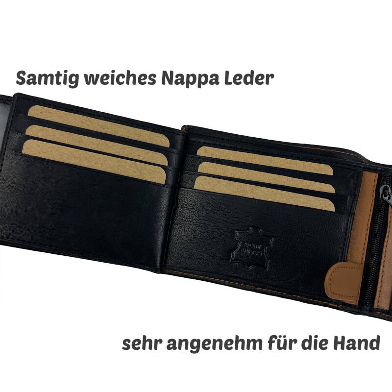 BRAMUR steht für pure Eleganz und weiches Leder, das schon beim ersten Griff überzeugt. Gefertigt aus feinem Nappa-Leder mit kontrastreichen hellbraunen Akzenten verbindet diese Geldbörse klassische Handwerkskunst mit moderner Funktionalität.