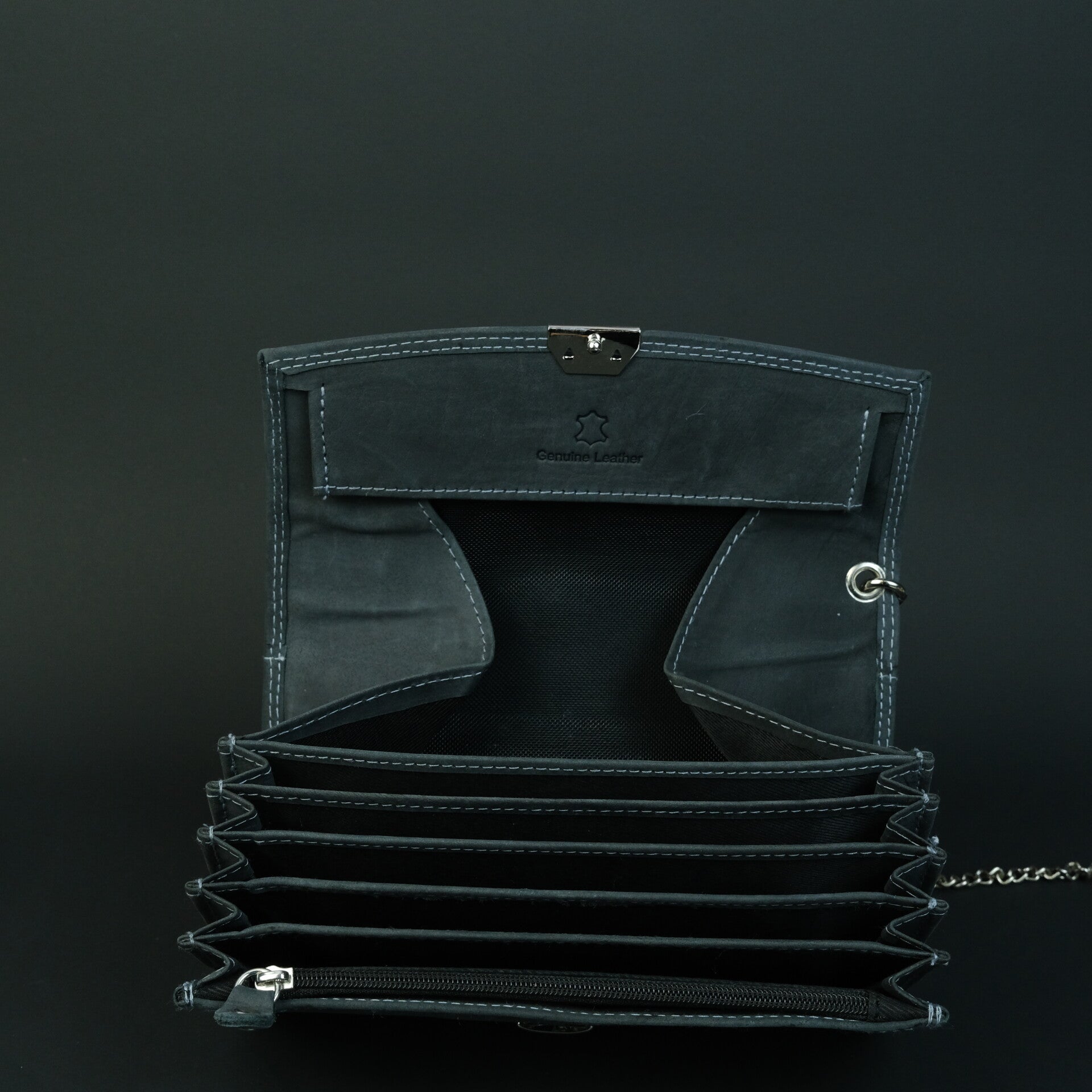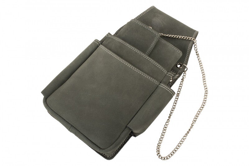 Der Halfter aus dem gleichen Hunter-Leder sorgt für festen Sitz und Ordnung – mit separaten Fächern für Notizblock, Stifte und die Kellnerbörse. Dank Gürtelschlaufe sitzt alles zuverlässig am Körper, ohne zu verrutschen. Die stabile Metallkette verbindet Börse und Halfter sicher miteinander.