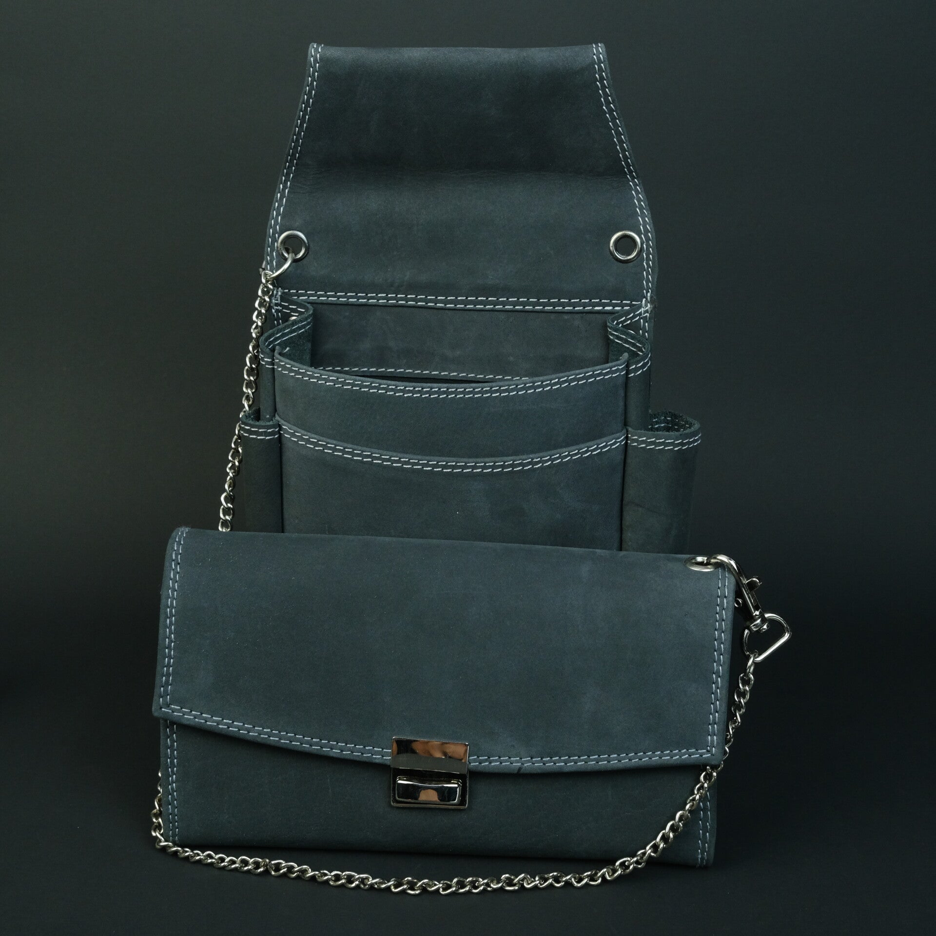 Das HALVIK-SET ist ein robustes, praxisorientiertes Komplettpaket für den professionellen Einsatz im Service, an Verkaufsständen oder auf Events. Die Kellnergeldbörse besteht aus geöltem Hunter-Leder, das für seine extreme Langlebigkeit und die typische Patina bekannt ist, die mit jeder Nutzung individueller wird.