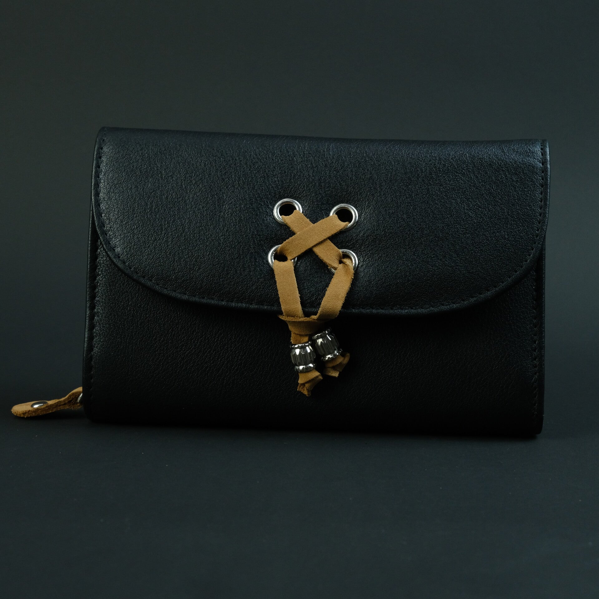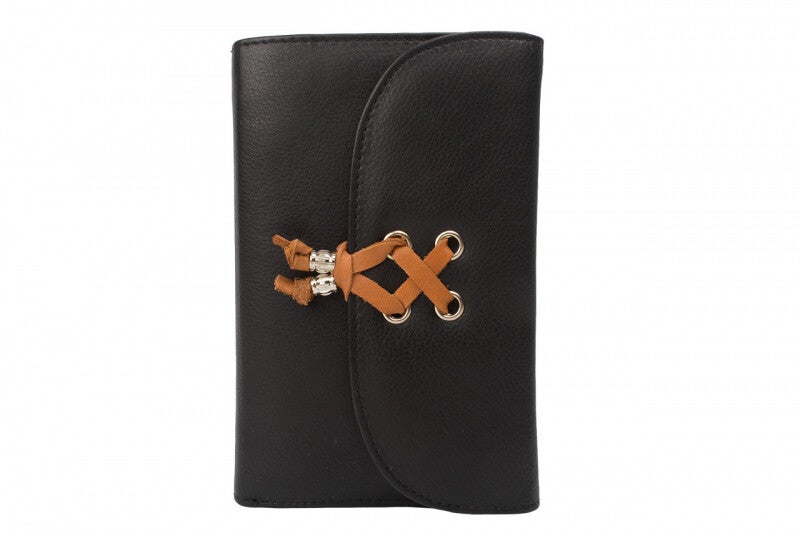 TANORIEL – Mittlere Damenbörse aus Rind-Nappa – schwarz/tan
